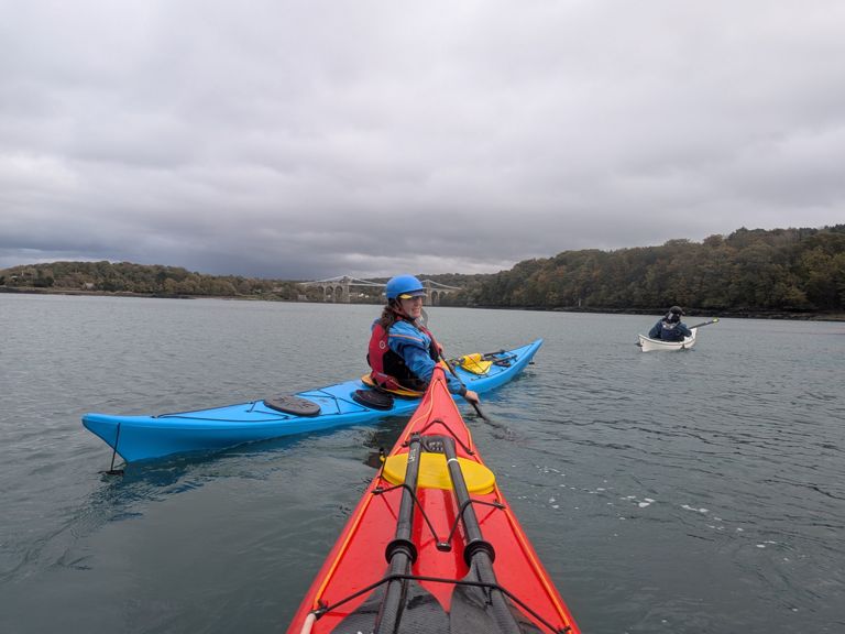 Day 2 of training with SKUK adventures. The SE wind was F6 gusting F8 today so out four groups all headed to the shelter of the Menai.