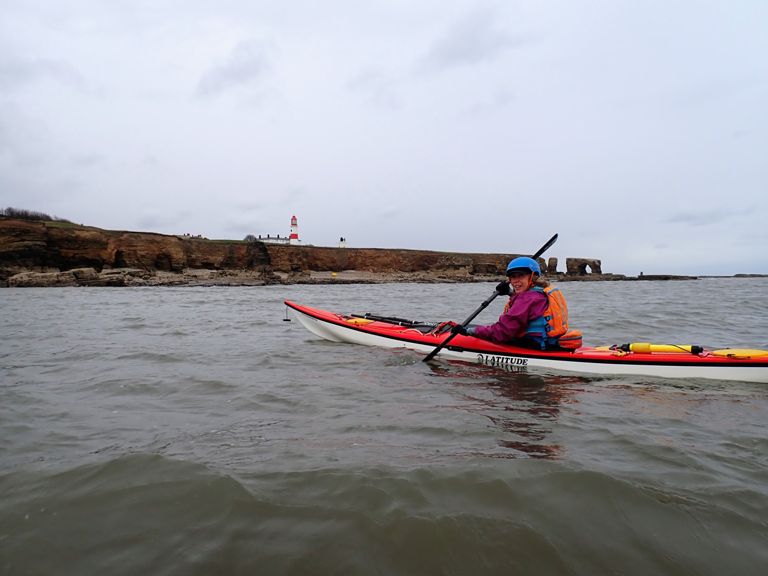 Out to play was Paul, Sarah, Mark, Kev P, Felix, Colin and Steven. The tidal height wasn’t right for exploring the caves (the arch was dry!) and so we just paddled down to Whitburn and back. Fuelled by Mark’s creme eggs at our lunch stop.